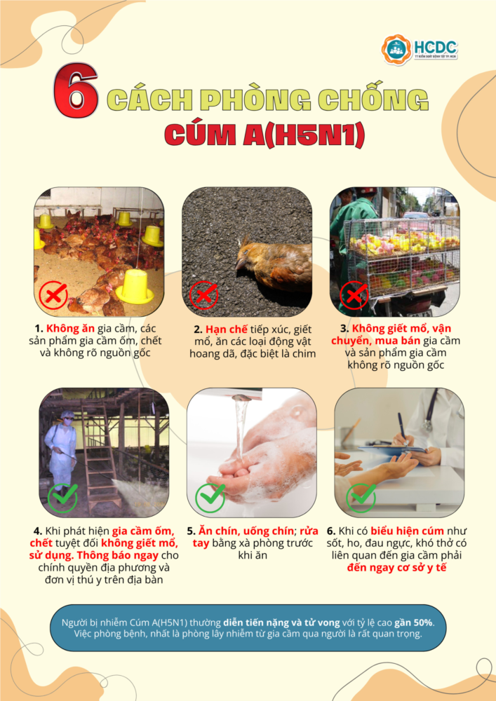 *Người bị nhiễm Cúm A(H5N1) thường diễn tiến nặng và tử vong với tỷ lệ cao gần 50%. Việc phòng bệnh, nhất là phòng lây nhiễm từ gia cầm qua người là rất quan trọng.